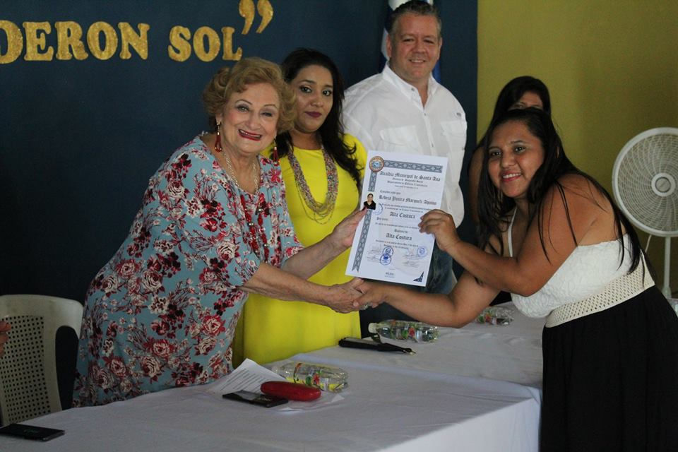 En el desarrollo de la actividad se hizo entrega de una placa conmemorativa en Homenaje Póstumo al Dr. Armando Calderón Sol, por ser el pionero en la fundación de los Talleres Vocacionales y brindar siempre su apoyo a la población; el reconocimiento fue recibido por la Edil santaneca quien es hermana del ex presidente.