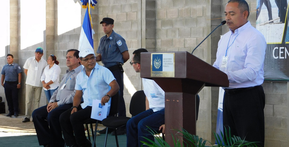 El Vicepresidente de la República y Secretario Técnico y de Planificación de la Presidencia, Oscar Ortiz, junto al ministro de Justicia y Seguridad Pública, Mauricio Ramírez Landaverde; y el Director General de Centros Penales, Marco Tulio Lima, inauguraron el Centro de Detención Menor de Santa Ana.